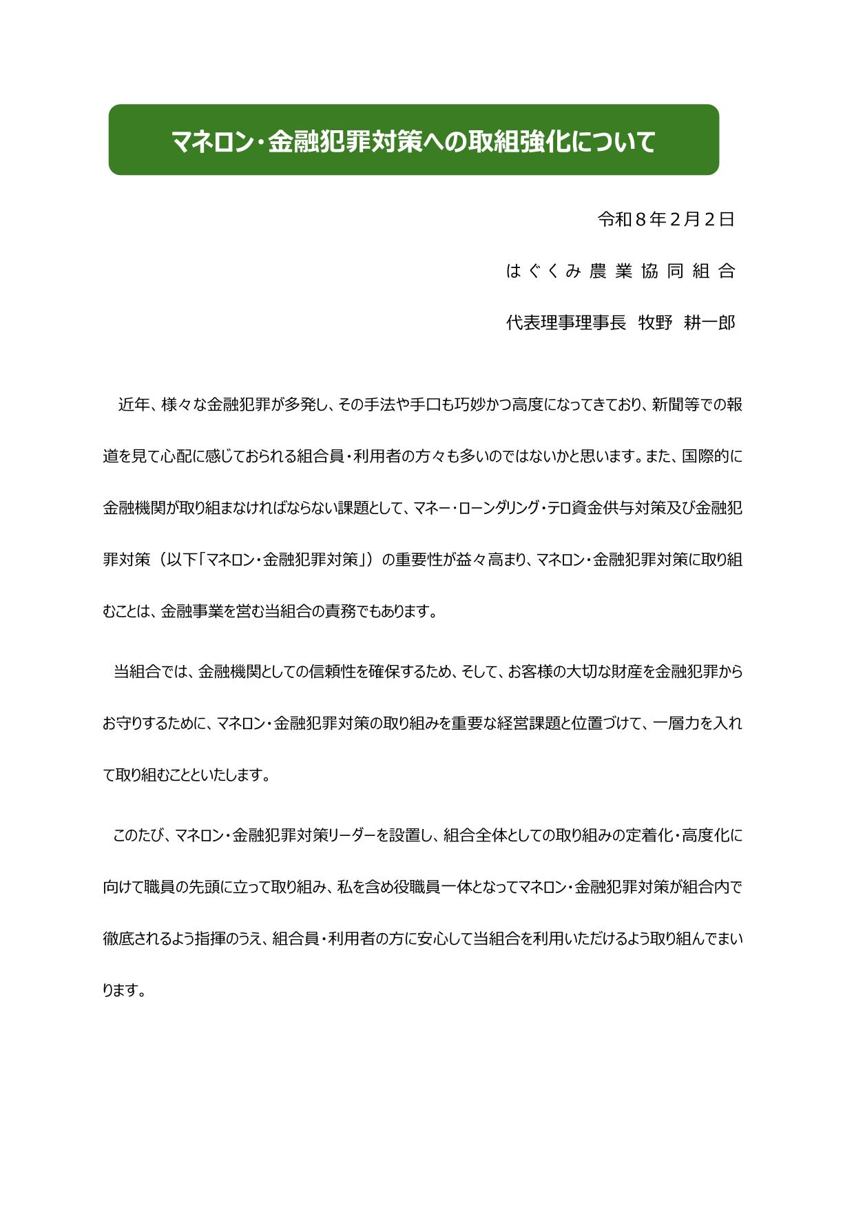 マネロン・金融犯罪対策への取組強化について
